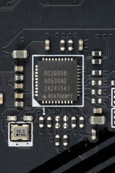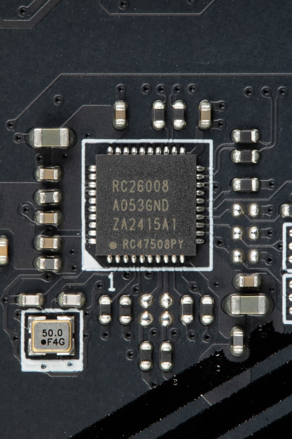 - 11 портов USB 3.2 Gen2: 4 реализованы через хаб Realtek RTS5420 (на него потрачена 1 линия USB 3.2 Gen2 от Z890), еще 4 реализованы через второй хаб Realtek RTS5420 (на него также потрачена 1 линия USB 3.2 Gen2 от Z890), и еще 3 реализованы через Z890, и представлены на задней панели 10 портами Type-A (красного цвета), а один – портом Type-C;