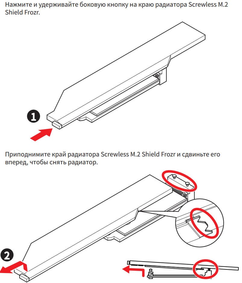 У всех слотов M.2 имеется удобный способ крепления накопителей через установленные на стойках поворотные замки.