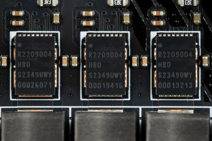 Каждый канал фазы VCore имеет суперферритовый дроссель и R2209004 DrMOS от Renesas на 110 А.