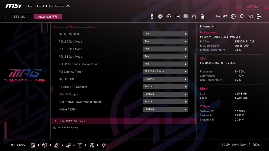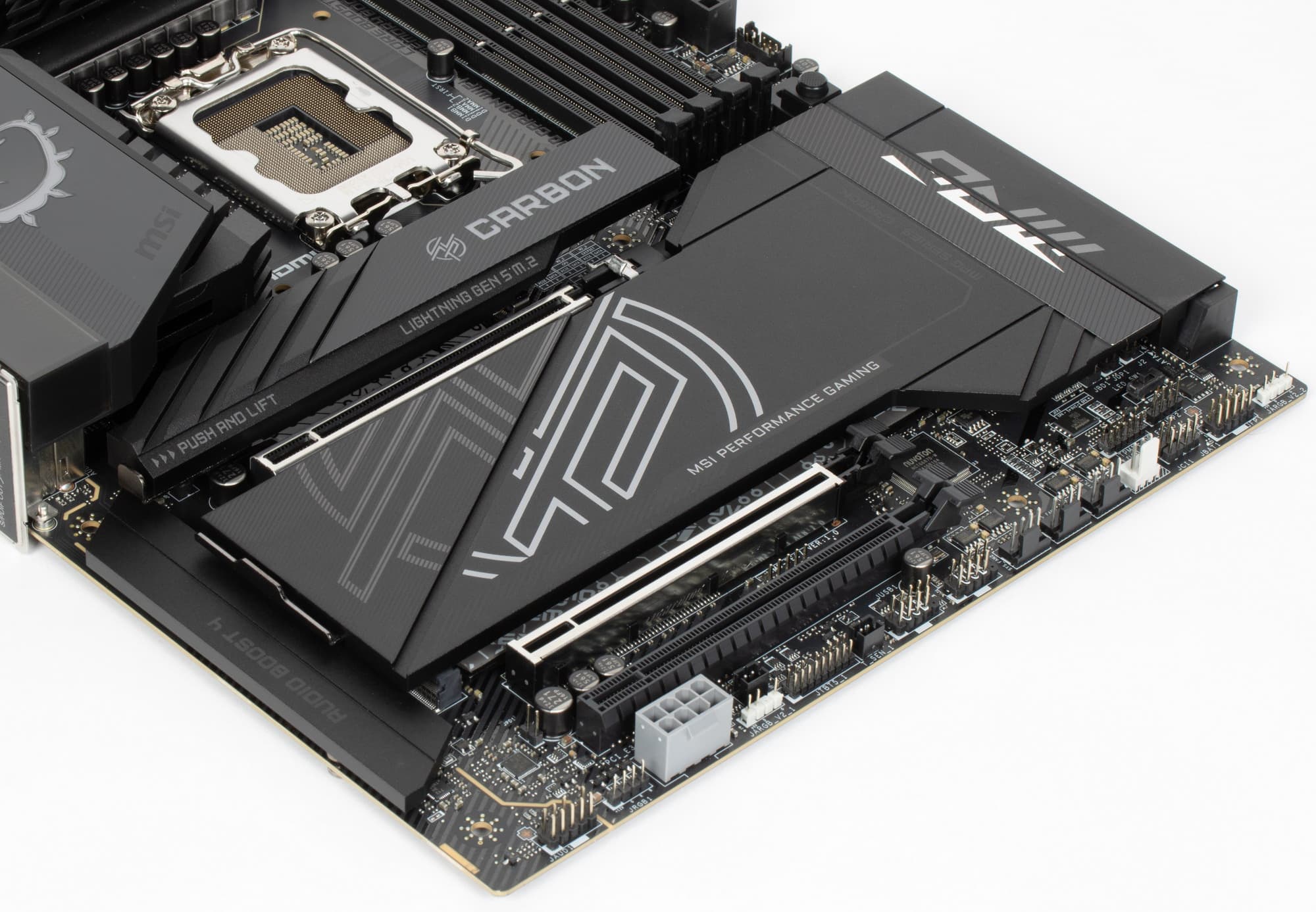 Стоит отметить, что даже при отсутствии устройств в первом PCIe x16 (PCI_E1) второй слот PCI_E2 все равно получает только 8 линий PCIe 5.0.