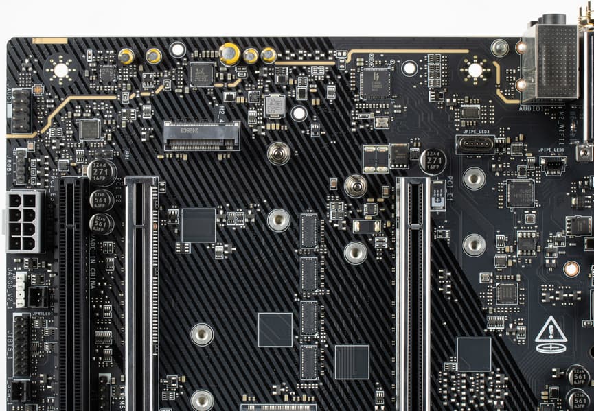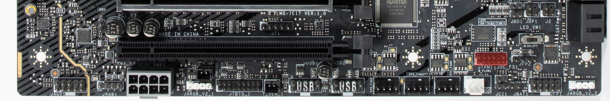 19 линий PCIe оказались занятыми, плюс 4 порта SATA. Связь с аудиокодеками через HDA (эмуляцию шины PCI) теперь невозможна, так что в данном случае линия USB 2.0 расходуется на связь с Realtek RTL1220, плюс один USB 2.0 расходуется на поддержку BT, а также контроллеры GL850G, NUC126 и другие для своих нужд используют сигнальные линии USB 2.0 и 3.2 Gen1. Детально об этом ниже в разделе USB-портов.