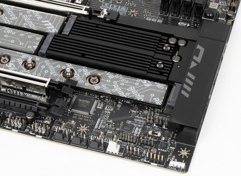 Как я уже упоминал ранее, M.2 слоты также имеют радиаторы: у верхнего — свой персональный радиатор, у остальных — общий.
