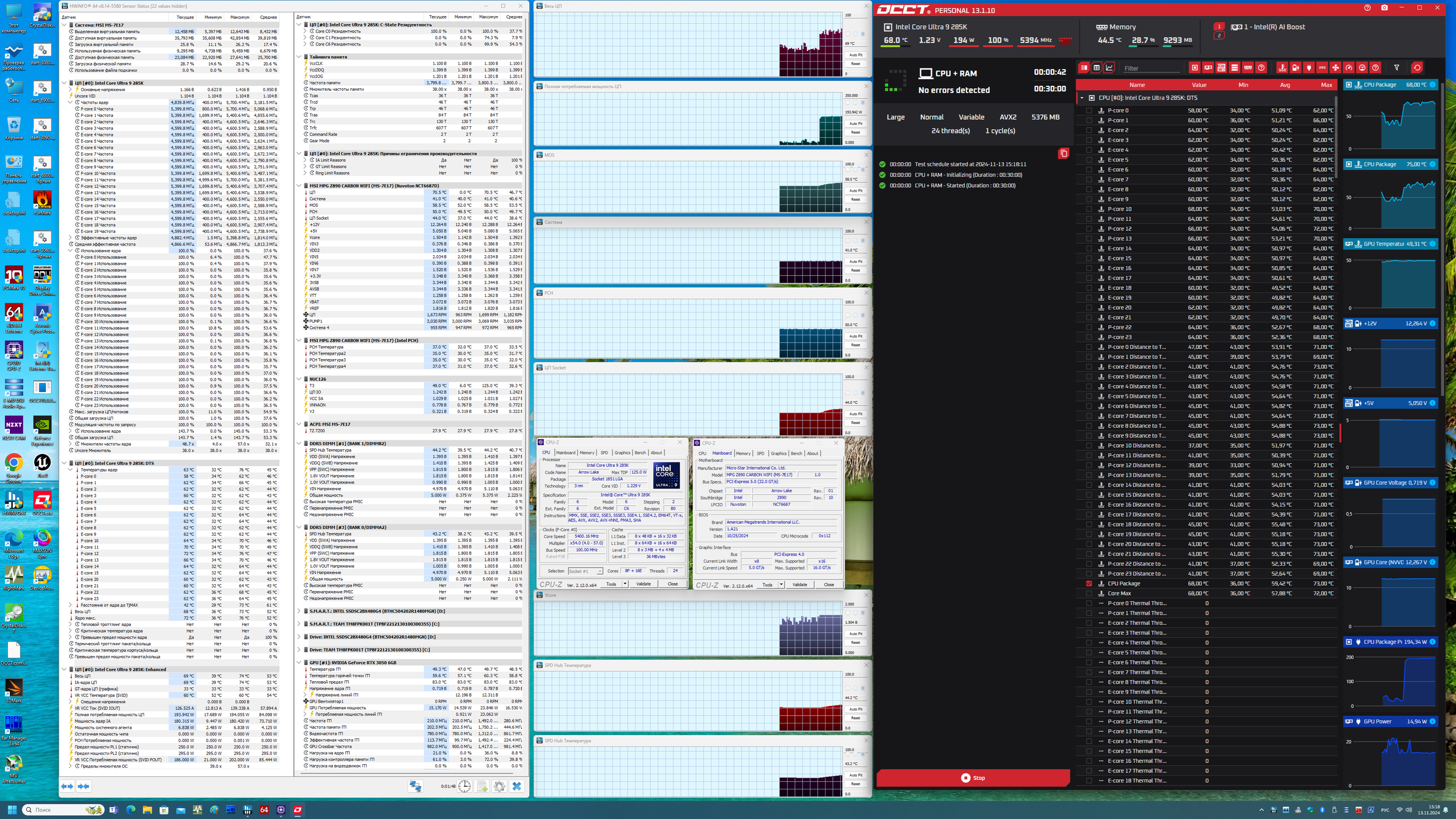 Запускаем все в режиме по умолчанию (в BIOS – профиль от Intel) . Затем нагружаем тестами OCCT.