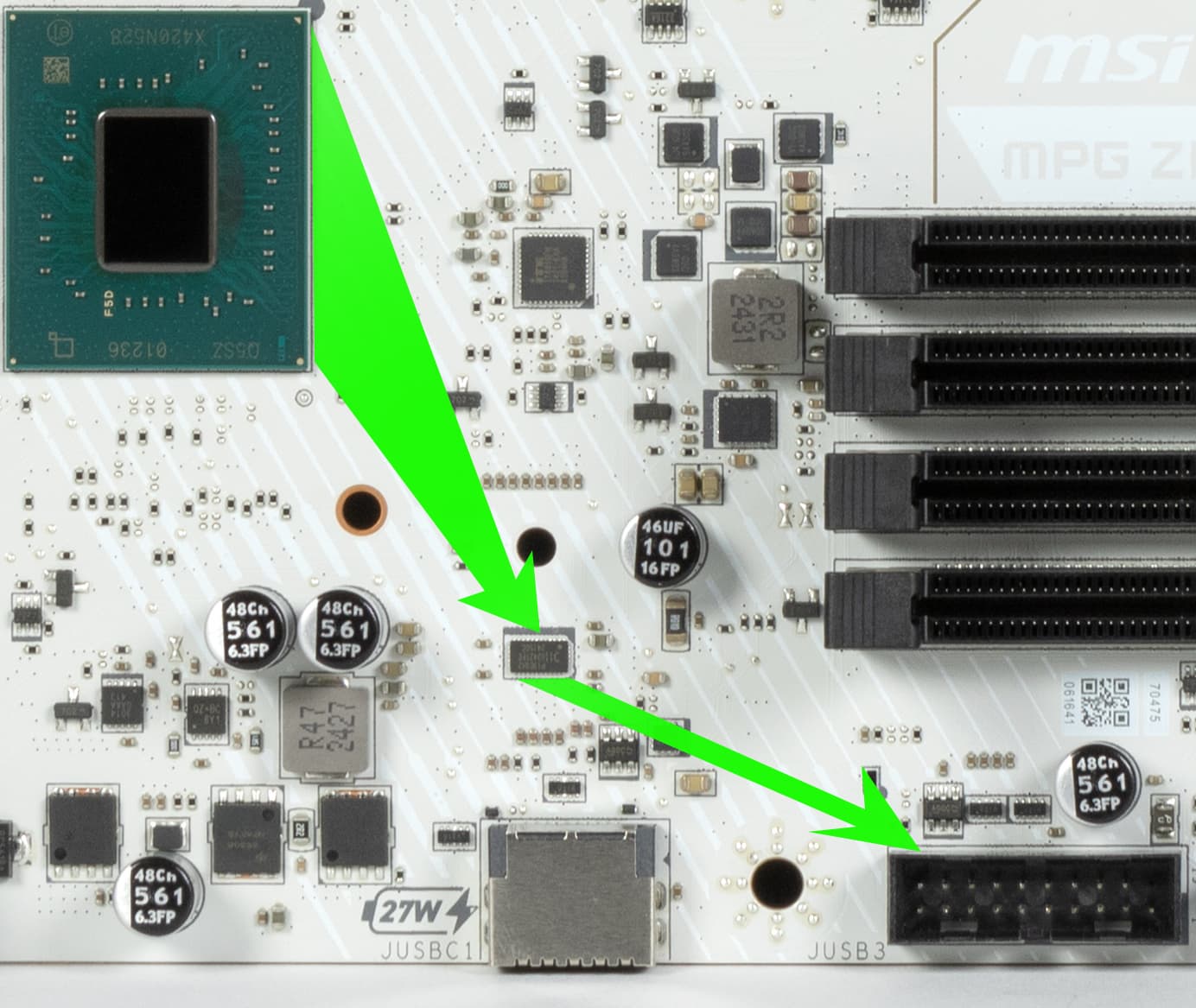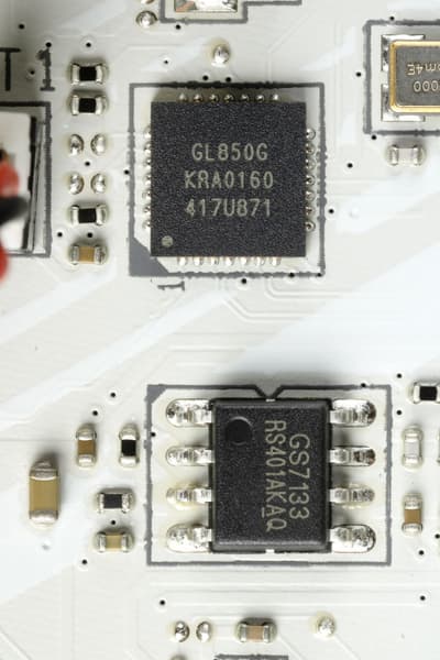 От второго Genesys Logic GL850G используют линии USB 2.0: выделенный порт Type-A на задней панели, а также 3 контроллера: