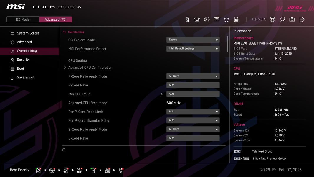 Я уже писал ранее, что вероятно ситуация с деградацией процессоров Intel 13xxx/14xxx от избыточного вольтажа привела к тому, что Intel перестраховывается, и без влезания в гущу настроек оверклокинга с переводом всего и вся на ручное управления авторазгон у всех вендоров дает примерно одинаковую производительность, а раскрученные через маркетинг опции сверхразгонов дают лишь считанные проценты приростов.
