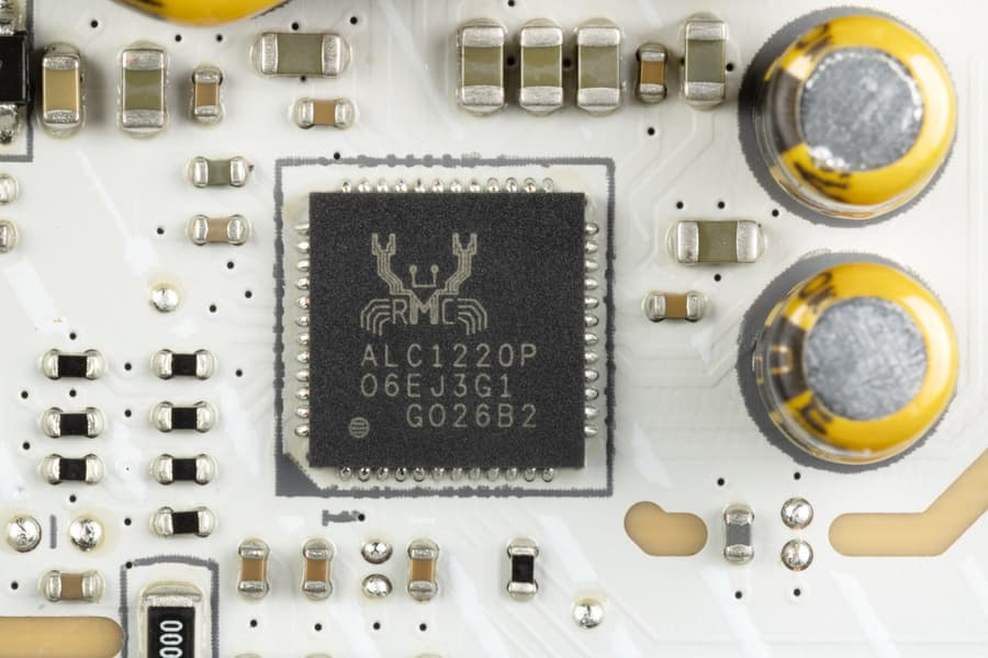 В данном случае плата оснащена аудиоподсистемой, где звуком заведует аудиокодек Realtek ALC1220, он целом обеспечивает вывод звука по схемам до 7.1 с разрешением до 24 бит /192 кГц. Не забываем, что для работы такого кодека требуются сигнальные линии USB 2.0.