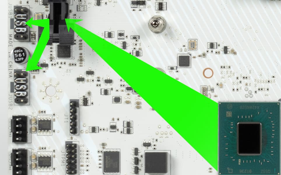 - 1 порт USB 3.2 Gen2x2: реализован с помощью Z890 и представлен одним внутренним портом Type-C (для подключения к соответствующему разъему на передней панели корпуса);