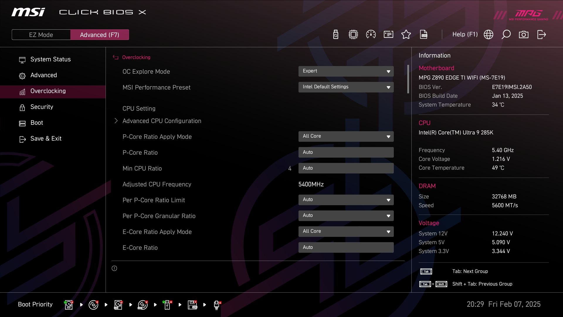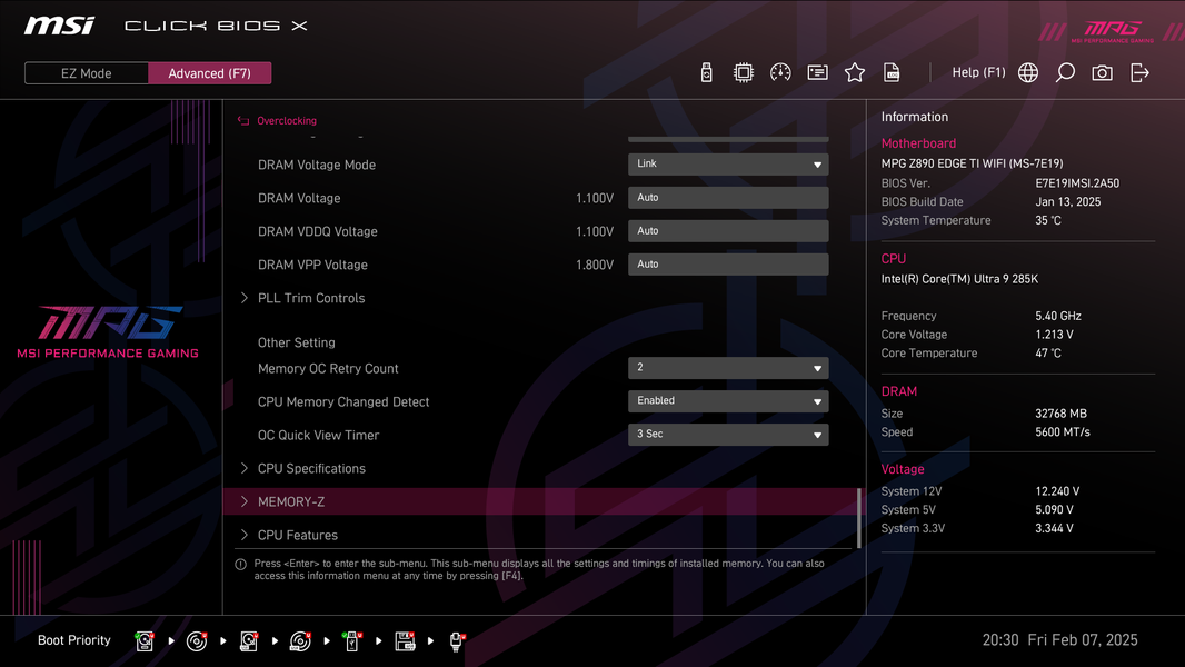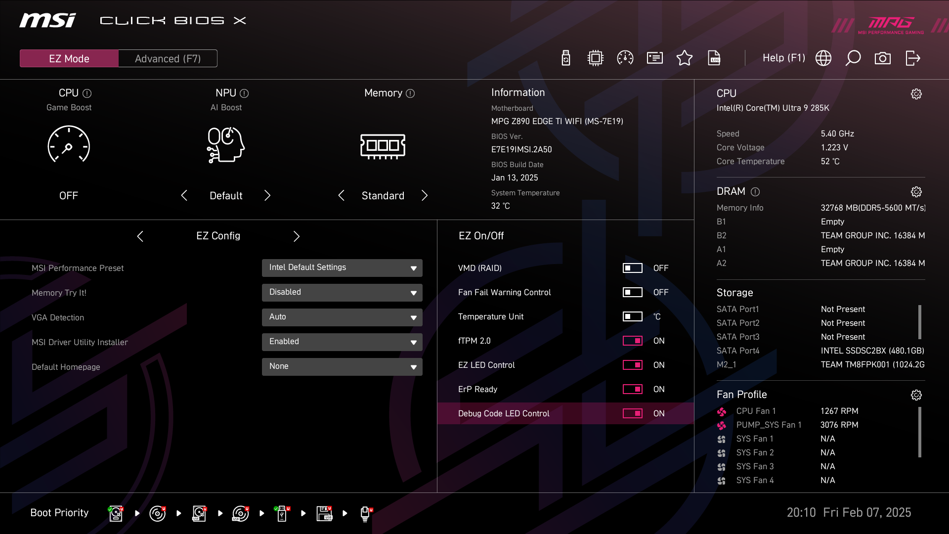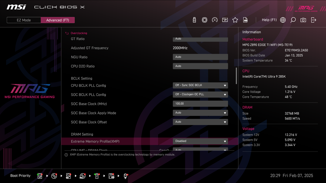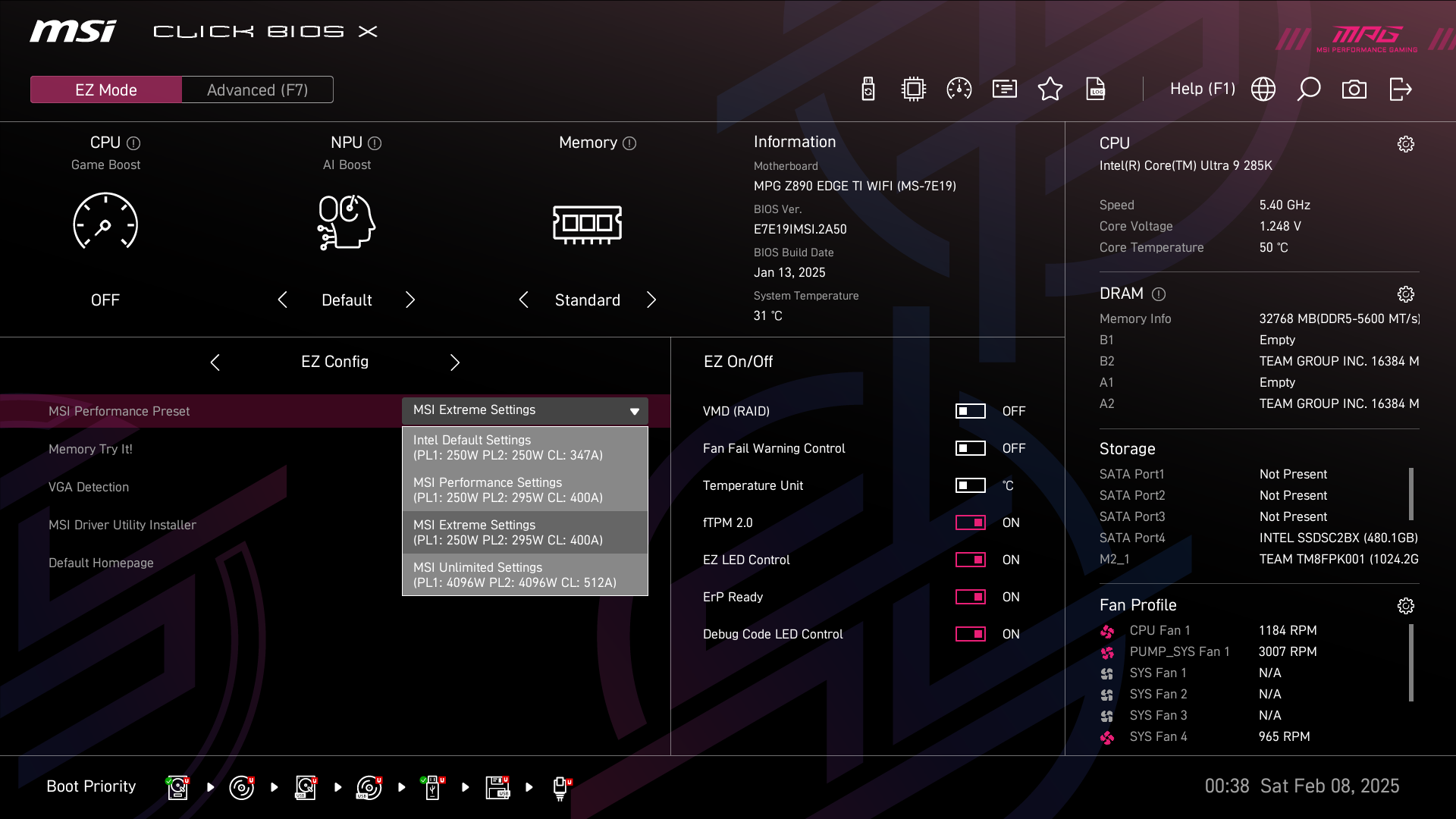 А теперь мы в BIOS активируем профиль MSI Extreme.