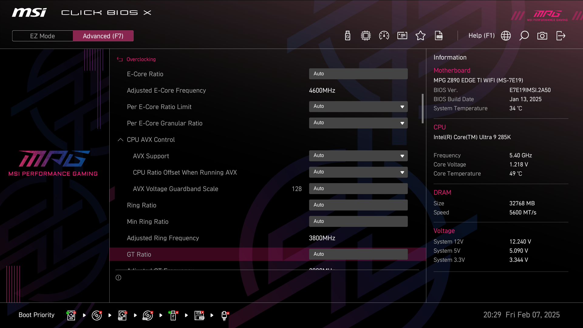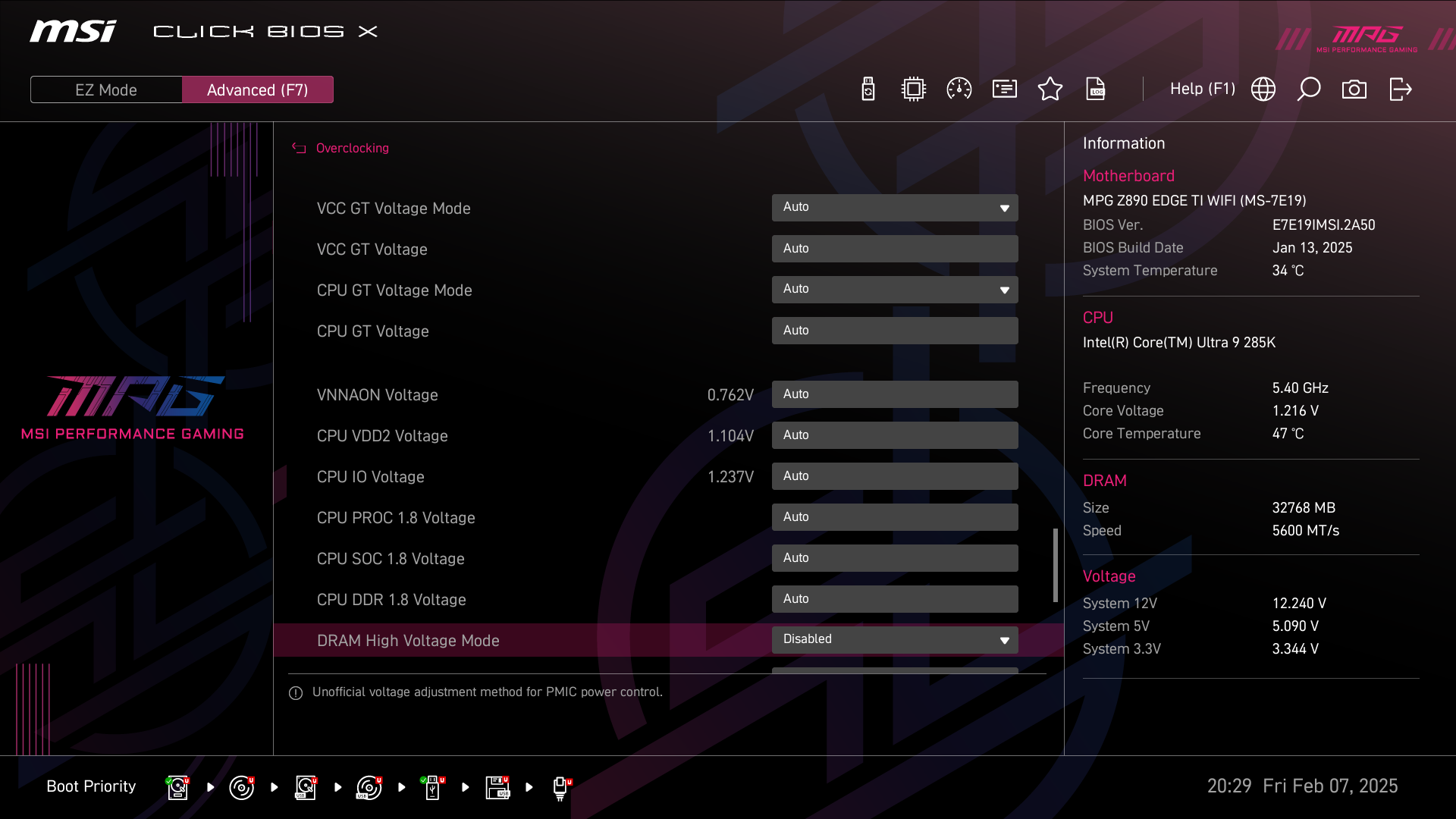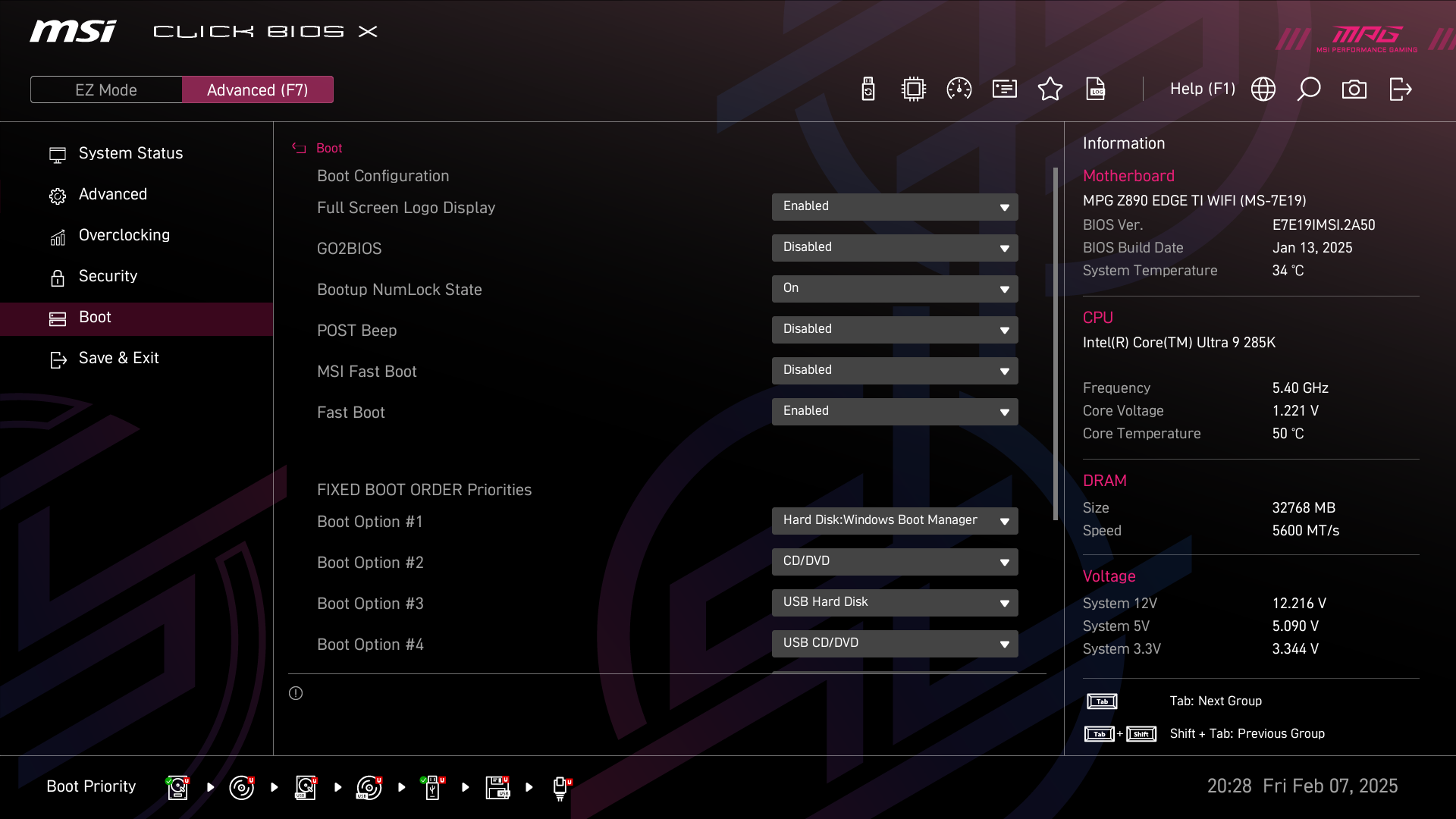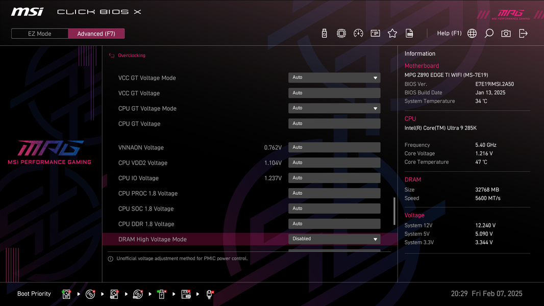А теперь мы в BIOS активируем профиль MSI Extreme.