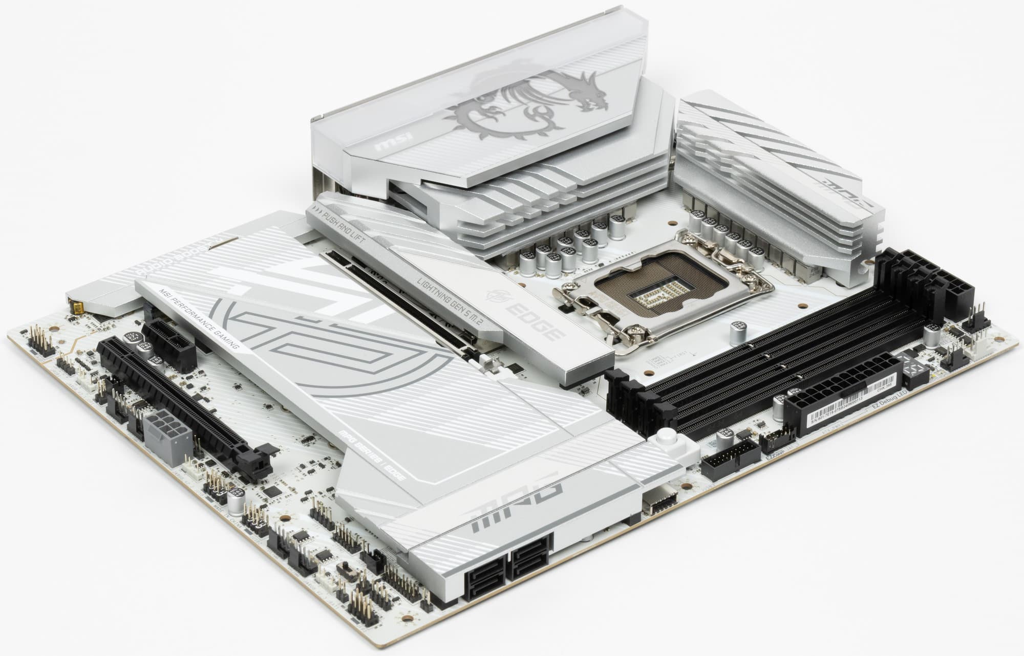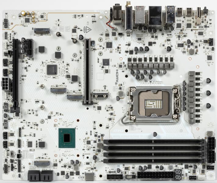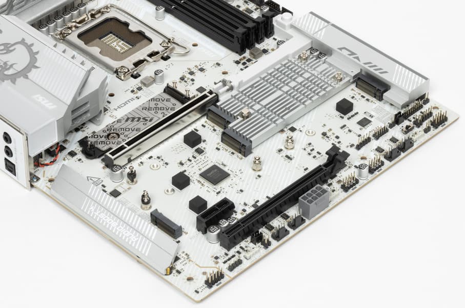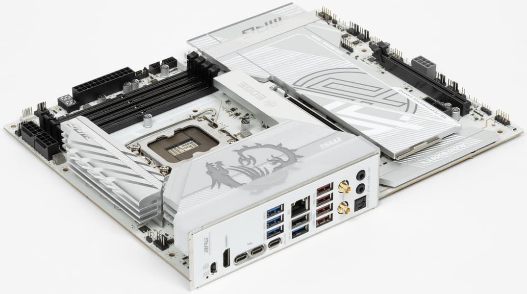 У нее имеется 18 портов USB разных видов, включая 2 USB4, один USB 3.2 Gen2×2 в виде внутреннего порта Type-C и 10 портов USB 3.2 Gen2/1. Также плата предлагает слот PCIe х16, получающий от процессора 16 линий PCIe 5.0, слот PCIe x1 и второй «длинный» слот, работающий в режиме x4 — последние подключены к чипсету. У платы 5 слотов M.2, два из которых подключены напрямую к процессору: один — линиями PCIe 4.0, второй — линиями PCIe 5.0. Три других слота М.2 подключены к чипсету Z890 линиями PCIe 4.0.