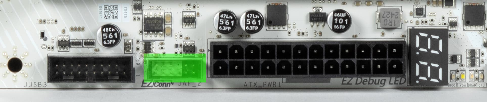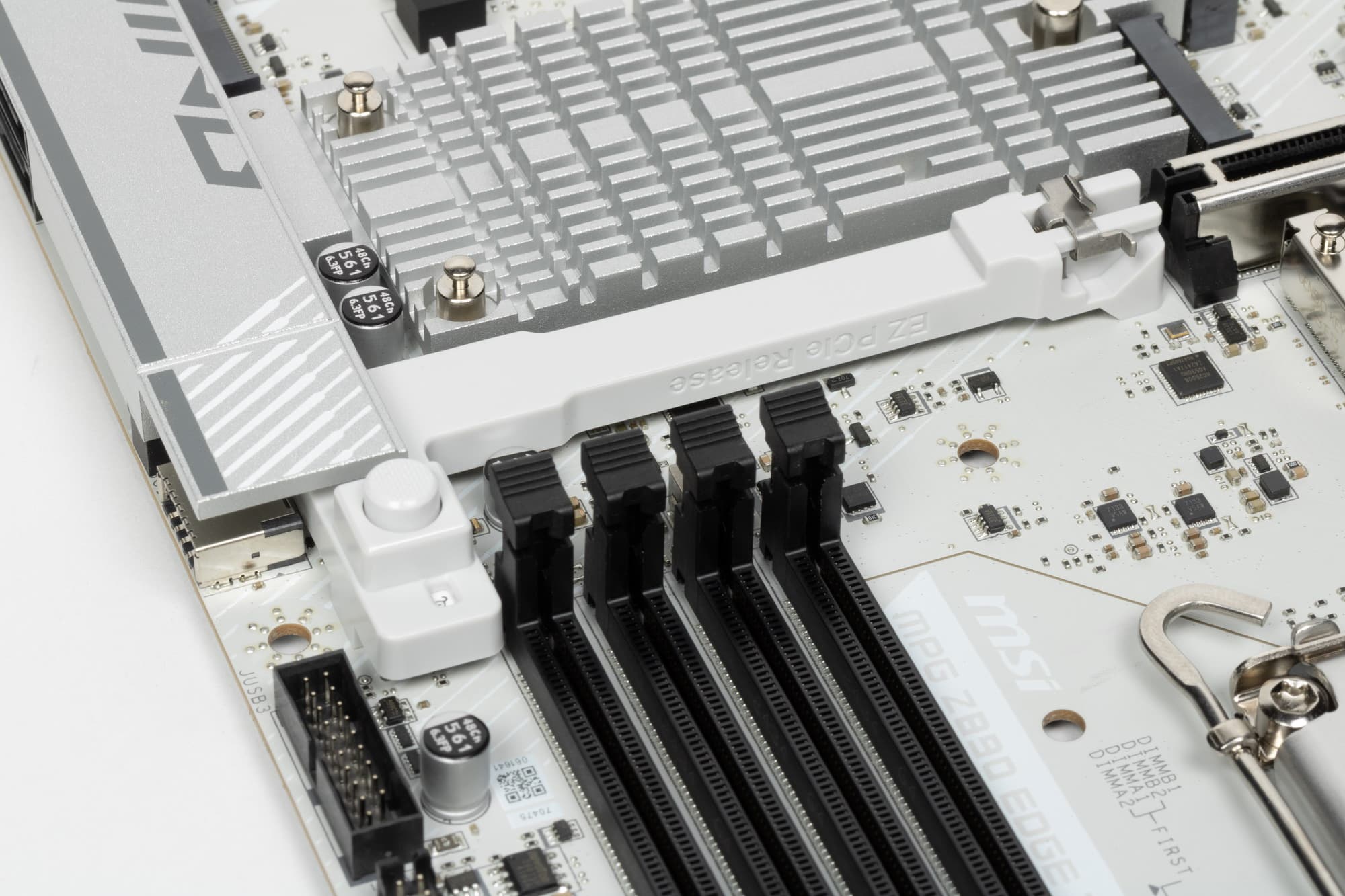 Для удобного извлечения видеокарт из слота PCI_E1 имеется особый механизм EZ-PCIE-Release c кнопкой.