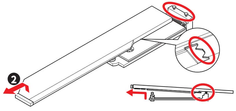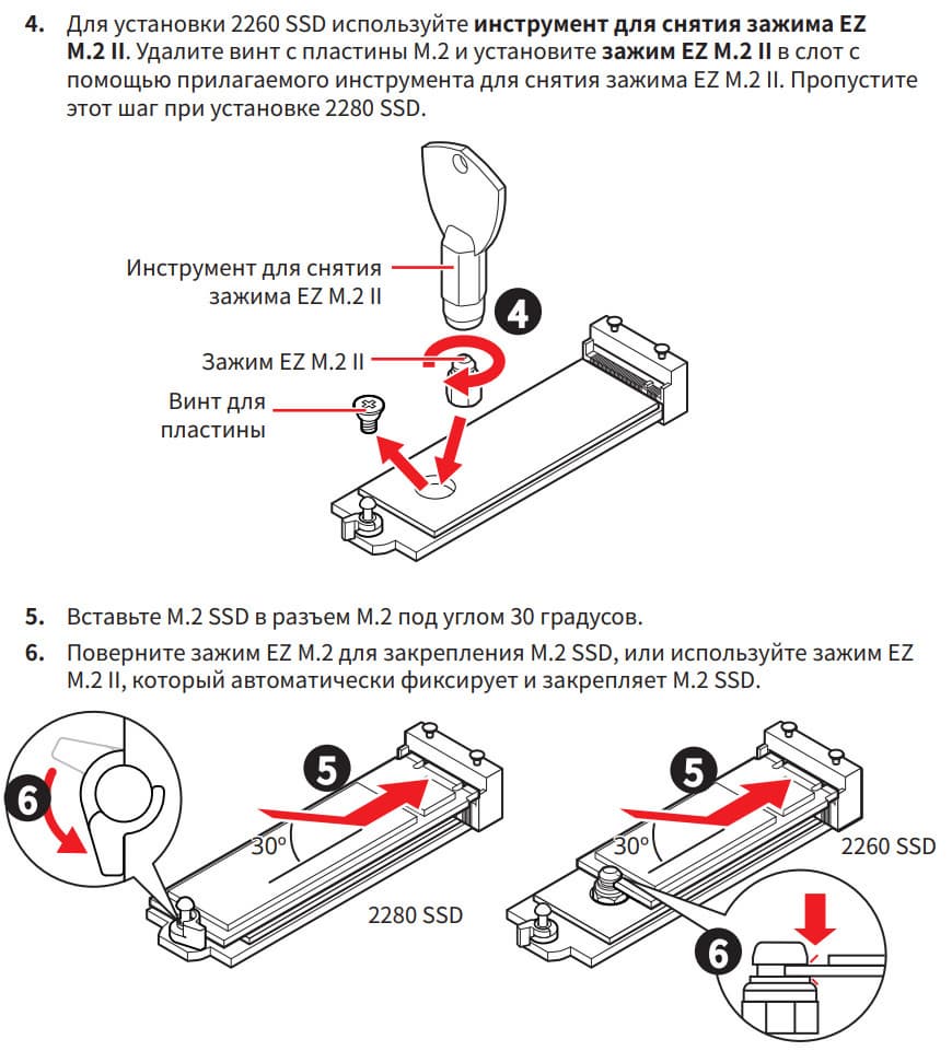 У всех слотов M.2 имеется удобный способ крепления накопителей через установленные на стойках поворотные замки.