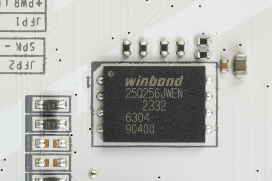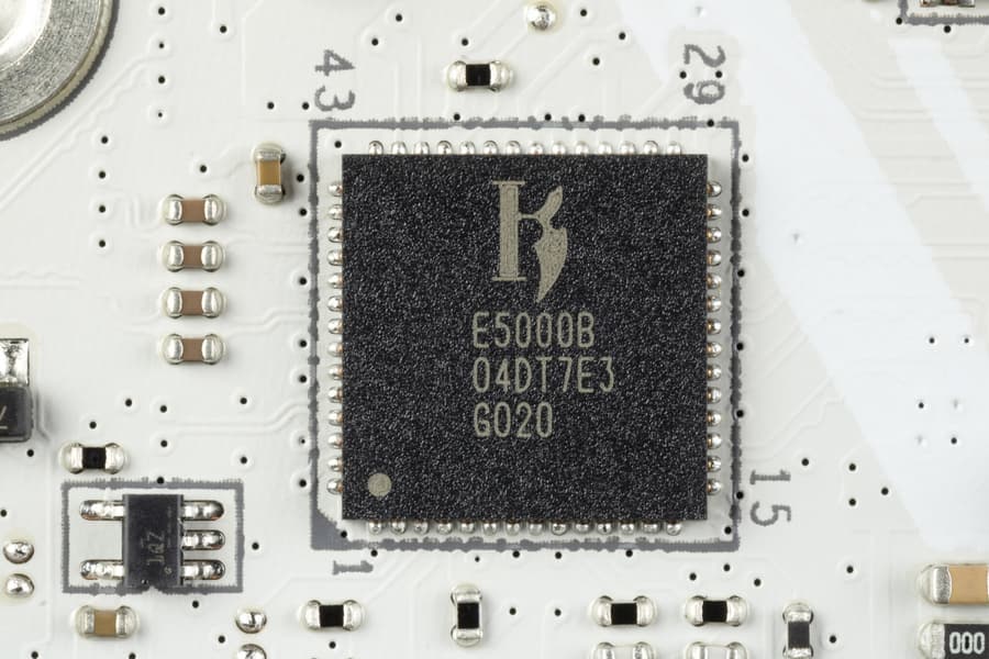 - 5 портов USB 2.0/1.1: 4 реализованы через контроллер Genesys Logic GL850G (он расположен под слотом PCIe E3, поэтому его почти не видно, на него потрачена 1 линия USB 2.0 от Z890) и представлены двумя внутренними разъемами (каждый на 2 порта); еще один реализован через второй контроллер Genesys Logic GL850G и представлен на задней панели портом Type-A (черного цвета)
