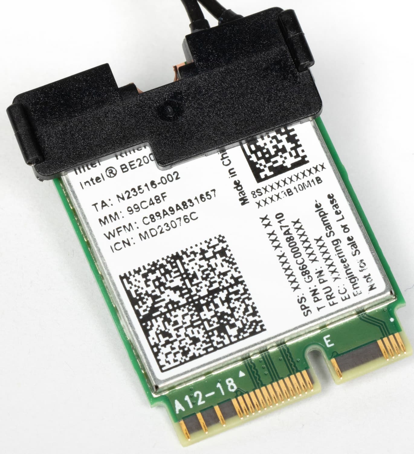 Имеется и комплексный беспроводной адаптер на контроллере Intel BE200, через который реализованы Wi-Fi 7 (802.11a/b/g/n/ac/ax/be, 2,4/5/6 ГГц) и Bluetooth 5.4. Он установлен в слот M.2 (E-key), и его разъемы для выносных антенн выведены на заднюю панель.