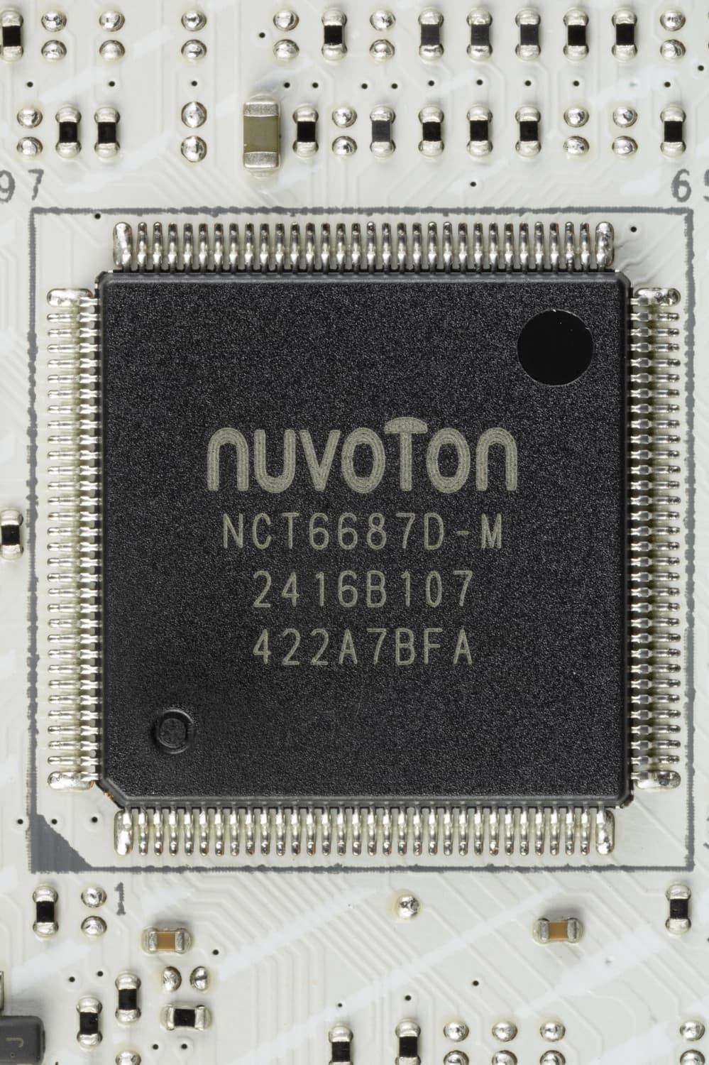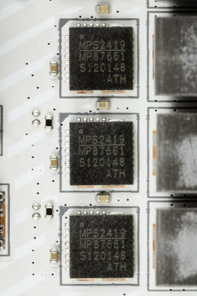 Каждый канал фазы VCore имеет суперферритовый дроссель и M87692 DrMOS от Monolithic Power Systems на 90 А.
