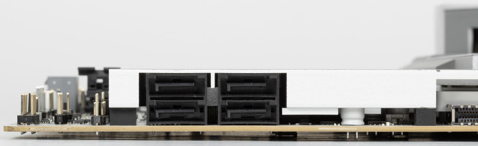Все M.2 слоты имеют радиаторы. Верхний M.2_1 обладает отдельным радиатором, когда как остальные все слоты M.2 имеют общий радиатор. Также слот M.2_1 кроме верхнего радиатора еще имеет радиатор для охлаждения тыльной стороны модулей.