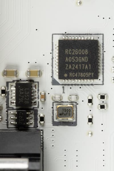 - Genesys Logic GL850G (хаб на дополнительные 4 USB 2.0 для обеспечения контроллеров и на выделенный 1 USB 2.0 на задней панели) (1 линия USB 2.0);