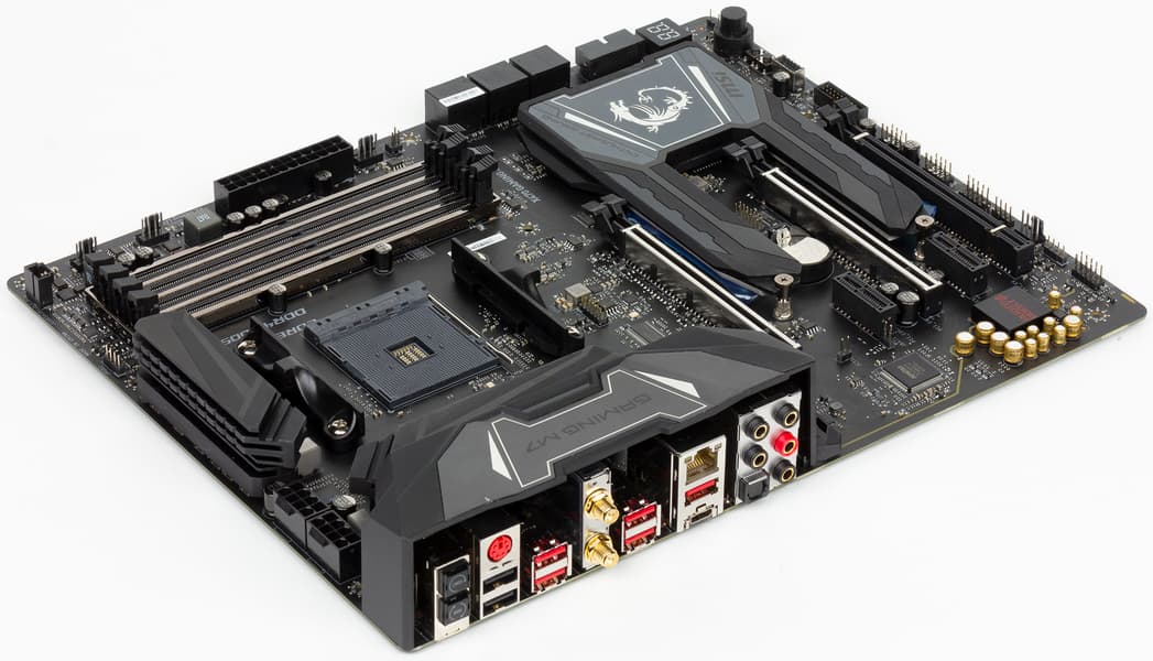 Хотя первые APU для АМ4 появились почти два года назад, а новые APU Ryzen оказались очень удачными, топовые платы для этой платформы нередко обходятся вообще без видеоразъемов. Основная причина — нацеленность APU на бюджетный сегмент, что слабо совместимо с идеей покупки дорогой платы. К тому же, если Intel встраивает GPU во все процессоры для LGA1151, у AMD модели «с графикой» изначально ограничены по количеству ядер и другим техническим параметрам. В общем, критиковать инженеров MSI за отсутствие на этой плате видеоразъемов мы не будем — как уже неоднократно было сказано, APU имеет смысл использовать совсем с другими платами.