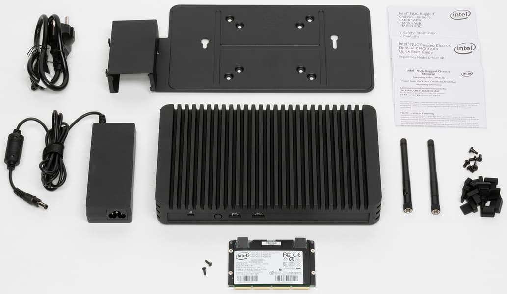 Как уже было сказано выше, судьба Compute Card очень сильно зависела от партнеров компании. Последние на выставках показывали много интересных разработок, но дальше выставок дело в основном и не пошло. А вот настольные «доки» корпоративным сегментом потреблялись активно. При разработке же «элементов» таковые были доработаны именно с учетом подобного использования — так что и вариантов шасси в Intel выпустили уже несколько штук. Две модели шасси семейства NUC 8 Pro рассчитаны на активное охлаждение, в чем похожи на обычные «квадратные» NUC — просто под сменные элементы. Еще пять корпусов семейства NUC 8 Rugged — уже пассивное охлаждение и защищенное исполнение. Почему их так много? А это как раз основная фишка, ради которой модульность и затевалась. Проблема классических мини-ПК — законченность и монолитность конструкции. Бывает, есть на рынке подходящая модель — все устраивает, но USB-портов хочется на пару больше. И эта пара есть в другой модели — но там чего-нибудь другого не хватает. Или, наоборот — что-то избыточно для решаемой задачи. Обеспечить подобный ассортимент решений при обычном подходе — значит выпускать 49 разных мини-ПК: столько комбинаций как раз дает семь разных «корпусных» и столько же «встраиваемых» элементов. На практике, естественно, никто этим заниматься не будет — сложно, дорого, трудно рассчитать потребности рынка по каждой конкретной модели, поставить их в магазины в достаточном количестве и т. п. Да и сами клиенты, в конце концов, в таком богатстве выбора попросту запутаются. Но 14 (7+7) разных продуктов — это совсем не 49 (7×7), а конечный результат — одинаковый: покупателям нужно просто определиться с элементами и шасси, и закупить их в нужном количестве. Не обязательно даже одинаковом — если в итоге часть элементов уйдет во встроенные решения, заниматься отладкой и настройкой нередко проще в настольном окружении. Да и провести диагностику (если что-то пошло не так) тоже удобнее, вытащив элемент из устройства, в котором он работает, и поставив на время в настольный корпус.