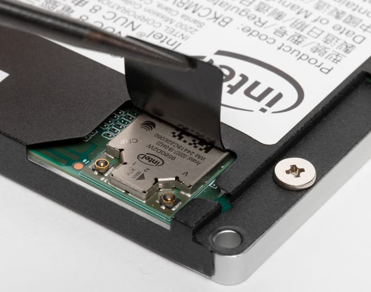 Беспроводной адаптер теперь расположен так, что к нему можно подключить внешние антеннки — полезное нововведение. Но в целом видно, что, как и прежде, основная ориентация идет на «внутренние силы»: процессор с интегрированной графикой и оперативная память внутри. Стартовая линейка строилась на процессорах Core восьмого поколения, т. е. Whiskey Lake и модули тогда содержали 4 или 8 ГБ оперативной памяти — в зависимости от количества ядер процессора. При этом в модулях на базе Celeron и Pentium Gold дополнительно оставили и eMMC на 64 ГБ — для упрощения встраиваемого в разную технику использования. А так шасси могут быть разными — от станка с ЧПУ до простой док-станции, т. е. в принципе NUC Compute Module и Compute Card заменяет. Просто процедура замены не такая простая — но, как оказалось, это не слишком-то и востребовано покупателями. А вот все остальные составляющие усилены.