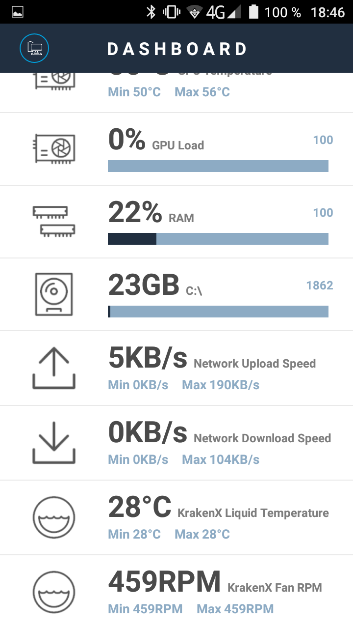 Существуют клиенты Cam под мобильные ОС iOS и Android. Связь с программой Cam, работающей на ПК, устанавливается через сервер NZXT, поэтому необходимо войти в учетную запись Cam как на ПК, так и на мобильном устройстве.