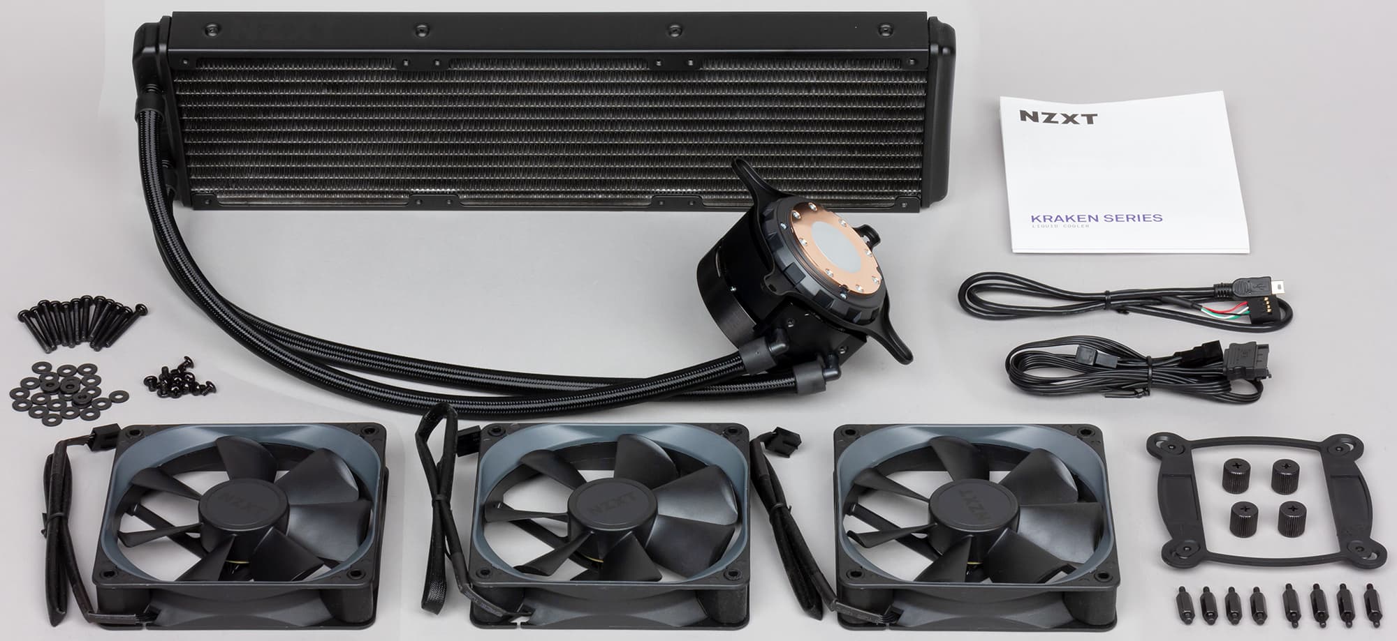 Мы уже тестировали три системы семейства NZXT Kraken, а именно модели X42, X52 и X62 с радиаторами на один вентилятор 140 мм, на два вентилятора 120 мм и на два по 140 мм соответственно. В случае модели X72 используется радиатор на три вентилятора 120 мм.