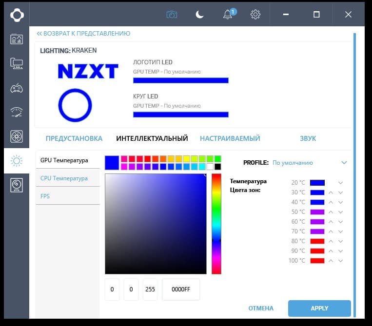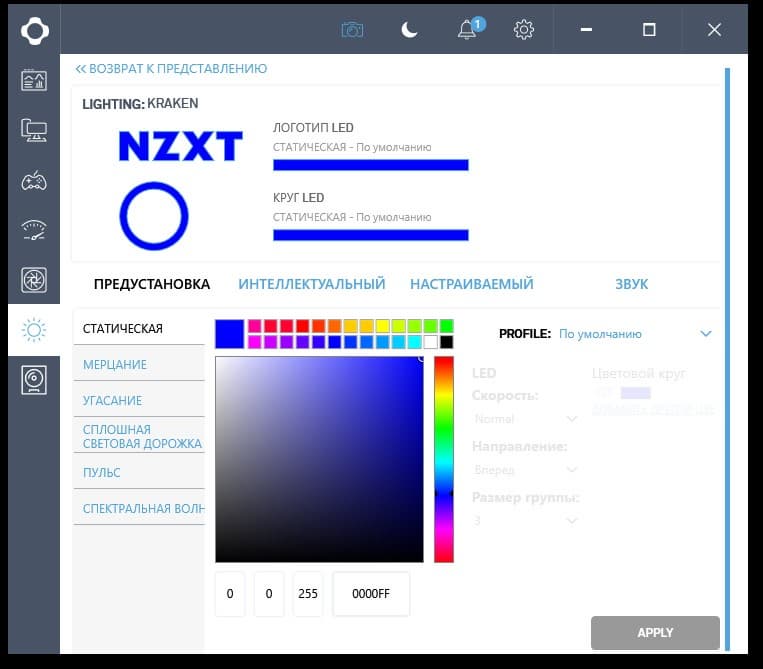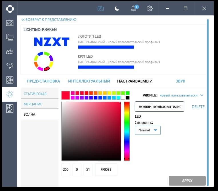 Также с помощью Cam можно управлять подсветкой логотипа и кольца на помпе. Статических и динамических вариантов очень много, включая синхронизацию с воспроизводимыми на ПК звуками.