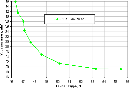Внимательные читатели могут сравнить это значение, с результатом в 190 Вт, полученным при тестировании системы NZXT Kraken X52 на два вентилятора 120 мм. На первый взгляд результат парадоксальный, так как радиатор на два вентилятора работает лучше, чем на три таких же вентилятора. Логичное объяснение заключается в том, что в тесте с NZXT Kraken X52 нагрузка создавалась с помощью программы Prime95, которая, по всей видимости, нагружает процессор больше, но греет области с датчиками температуры ядер меньше, чем следует ожидать, исходя из прироста мощности в сравнении с функцией Stress FPU из пакета AIDA64. Получается, что, если сравнивать системы охлаждения при тестировании по данной методики, то необходимо фиксировать много условий, включая ПО для создания нагрузки.