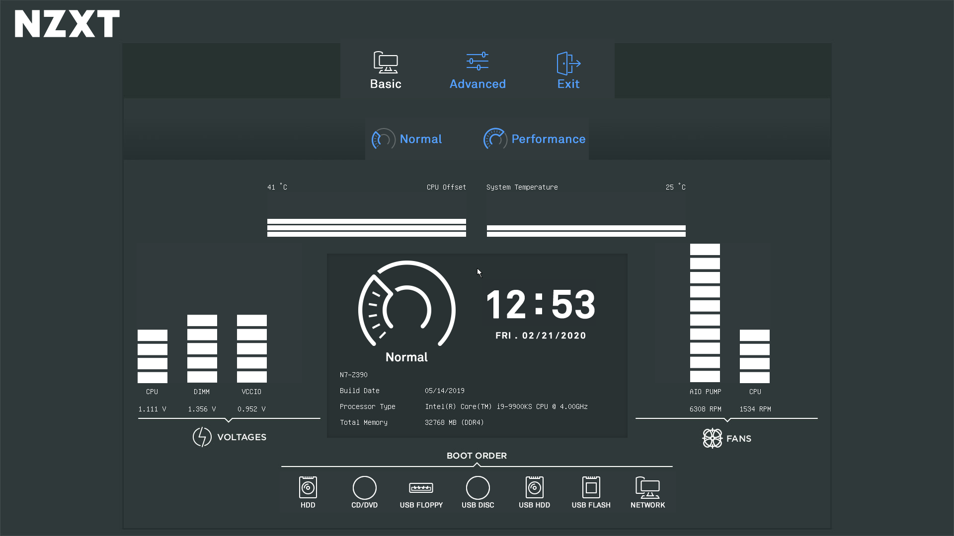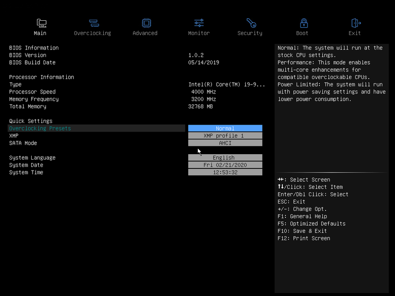 Попадаем в общее «простое» меню, где мало управления, а в основном информация. Тут же можно выбрать некие предустановленные режимы работы: Normal и Performance (я лично на практике не обнаружил каких-либо существенных отличий между этими режимами).