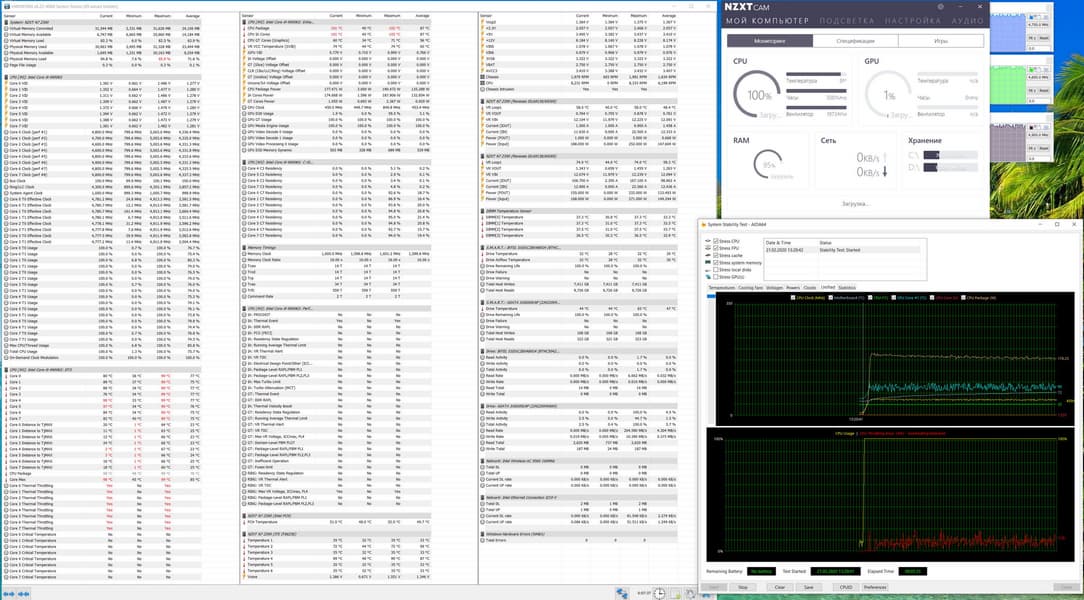 Запускаем все в режиме по умолчанию. Затем нагружаем жестким тестом от AIDA.