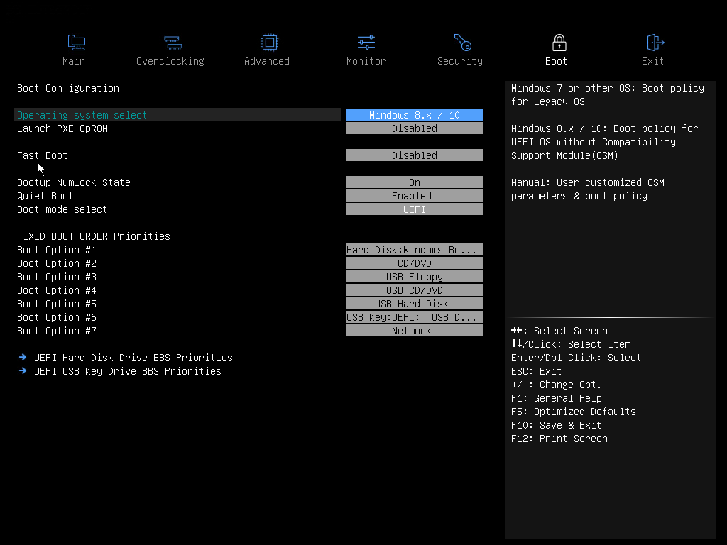 Мониторинг и опции загрузочного меню — всем хорошо известны.