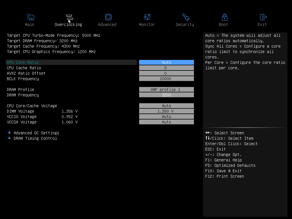 Для разгона есть стандартные опции в рамках того, что поддерживают процессоры Core и оперативная память DDR4, причем в сокращенном виде (по сравнению с богатством опций у иных производителей).