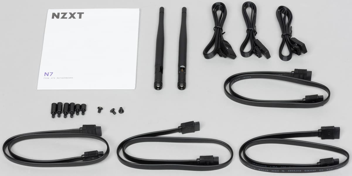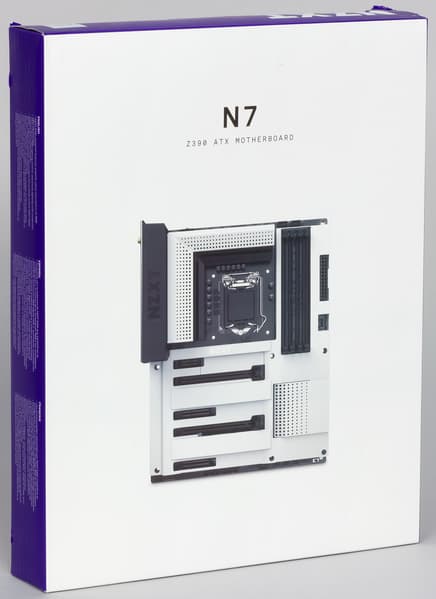NZXT N7 Z390 поставляется в больш... ой, как раз в небольшой и очень тонкой коробке с фирменными цветами NZXT. Что прямо очень удивительно, так как мы уже привыкли к толстым и увесистым коробкам с материнскими платами топового уровня.
