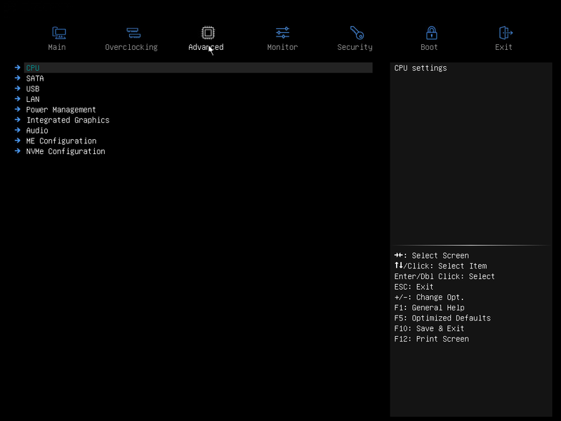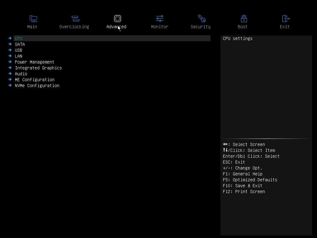 В «продвинутом» меню еще еще свое подменю с тем же названием. В нем управление основными параметрами процессора и периферия.