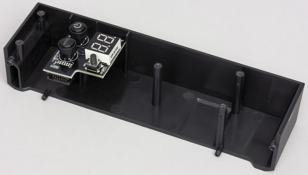 Над блоком разъемов задней панели мы видим привычный кожух, он несет в себе маленькую плату с кнопками и табло POST-кодов, вынесенных на заднюю панель (эта платка подключается к материнке через особый разъем).