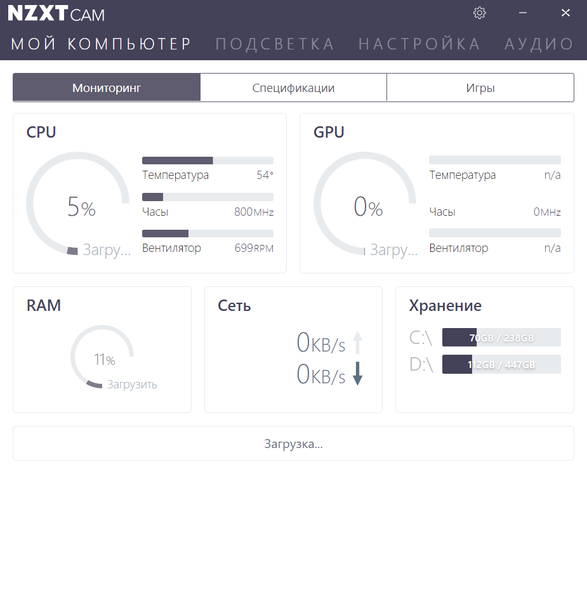 Все программное обеспечение можно скачать с сайта производителя NZXT.com. Собственно, там всего одна утилита CAM.