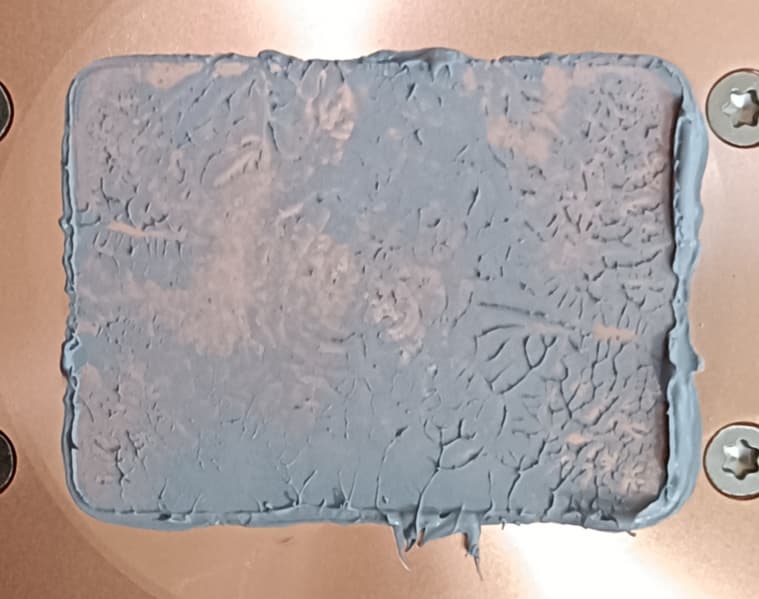 Забегая вперед, продемонстрируем распределение термопасты после завершения всех тестов. На процессоре Intel Core i9-13900K: