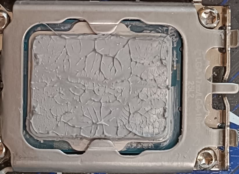В тестах использовалась качественная термопаста другого производителя. Забегая вперед, продемонстрируем распределение термопасты после завершения тестов. На процессоре Intel Core i9-13900K: