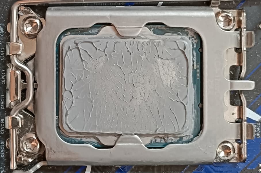 Забегая вперед, продемонстрируем распределение термопасты после завершения всех тестов. На процессоре Intel Core i9-13900K: