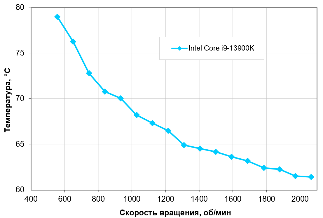 Полное описание методики тестирования приведено в соответствующей статье «Методика тестирования процессорных охладителей образца 2020 года». В данном тесте все ядра процессора Intel Core i9-13900K работали на частоте 4,1 ГГц.