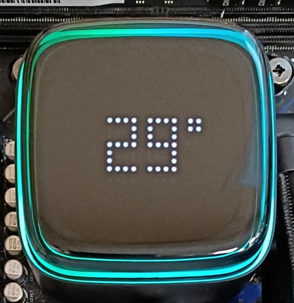 Для управления дисплеем нужно скачать ту же утилиту Ocypus Digital (куда следует за ней Windows отправляется сама — как только обнаружит новое USB-устройство, что очень удобно) и поместить ее в автозапуск (естественно, не забыв подключить USB-кабель). Вследствие последнего возможность включения/выключения дисплея, как нам кажется, излишняя — можно и просто программу не запускать, либо кабель не подключать. А из полезных настроек остается только систему для градусов выбрать, да то, температура чего будет отображаться. По логике это, вроде бы, должен быть центральный процессор, но никто не запрещает следить не за ним, а за GPU. Поворот дисплея не предусмотрен, хотя теоретически водоблок можно крутить хоть на 360 градусов, рассчитано всё только на «стандартную» ориентацию. Этот момент необходимо учитывать при сборке.