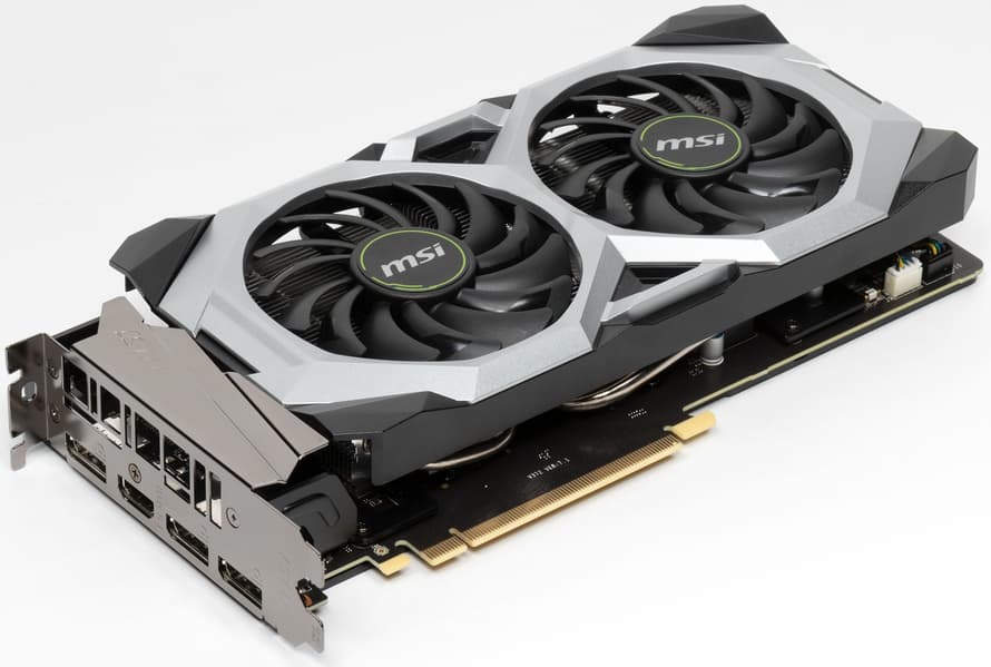 Процессор Core i3-9100F лишен встроенного видеоядра, и в данном случае это как никогда актуально, потому что в компьютере установлен мощный ускоритель Nvidia GeForce RTX 2070 Super производства MSI (GeForce RTX 2070 Super Ventus OC). У видеокарты совсем чуть-чуть (на 1%) повышены частоты относительно референсного ускорителя, так что производительность будет почти такая же. Опытный покупатель может попробовать самостоятельно разогнать GPU.
