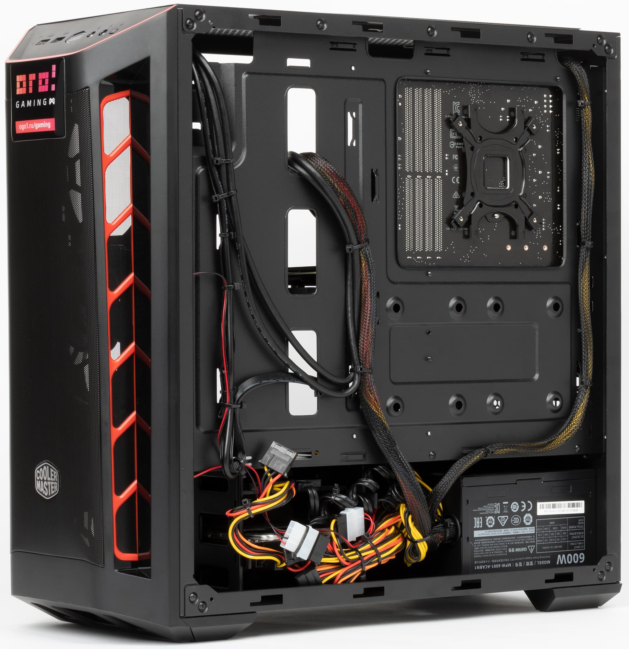 Что касается подсветки, то про нее долго рассказывать не придется: ее здесь нет. Да, в игровом компьютере с прозрачной стенкой нет подсветки. Это, на самом деле, неслабое достижение, потому что даже случайным перебором компьютерных комплектующих сегодня очень трудно не найти ни одной с заветными буквами RGB. Ну ладно, формально на материнской плате светится полоска, обрамляющая аудиотракт, но светится она совсем слабо, а через затемненную боковую стенку ее и вовсе не видно.