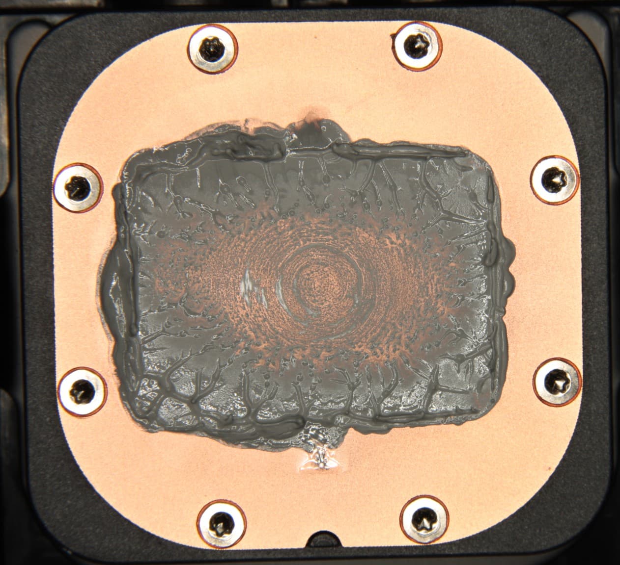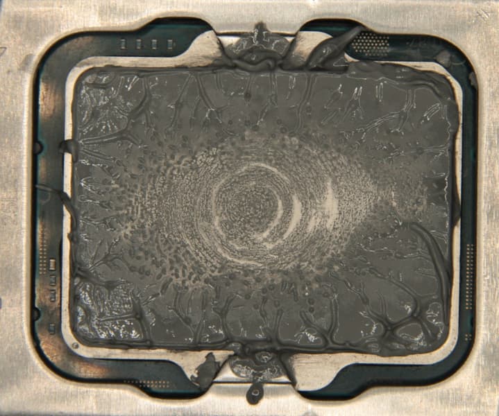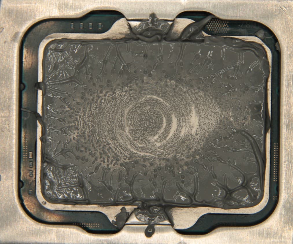 Забегая вперед, продемонстрируем распределение термопасты после завершения всех тестов. На процессоре Intel Core i9-13900K: