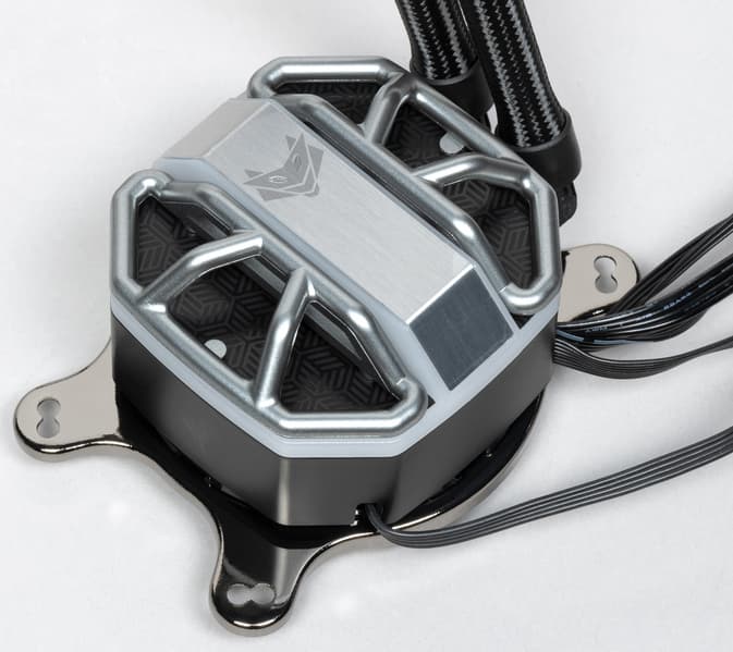 | Подключение вентилятора | 6-контактный разъем (общий, питание мотора 12 В (0,35 А), датчик вращения, управление ШИМ, данные (подсветка), питание 5 В (подсветка)) или 5-контактный разъем (общий, питание 12 В, управление ШИМ, данные, питание 5 В) к разъемам на кабелях от помпы |