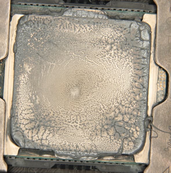 Запаса для ее восстановления в комплекте поставки, к сожалению, нет. В тестах использовалась качественная термопаста другого производителя. Забегая вперед, продемонстрируем распределение термопасты после завершения всех тестов. На процессоре Intel Core i9-7980XE: