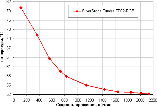 В этом тесте наш процессор с TDP 140 Вт не перегревается даже на минимальных оборотах вентиляторов в случае регулировки с помощью только ШИМ. Дополнительно мы зафиксировали КЗ на 0% и провели тестирование при 9, 6 и 3 В напряжения питания (это три точки на графике выше, ближайшие к 0 об/мин). И даже в этом случае перегрева не было, хотя в последней точке температура уже приблизилась к критической. Во всех последующих результатах также приведены данные для указанных трех точек.