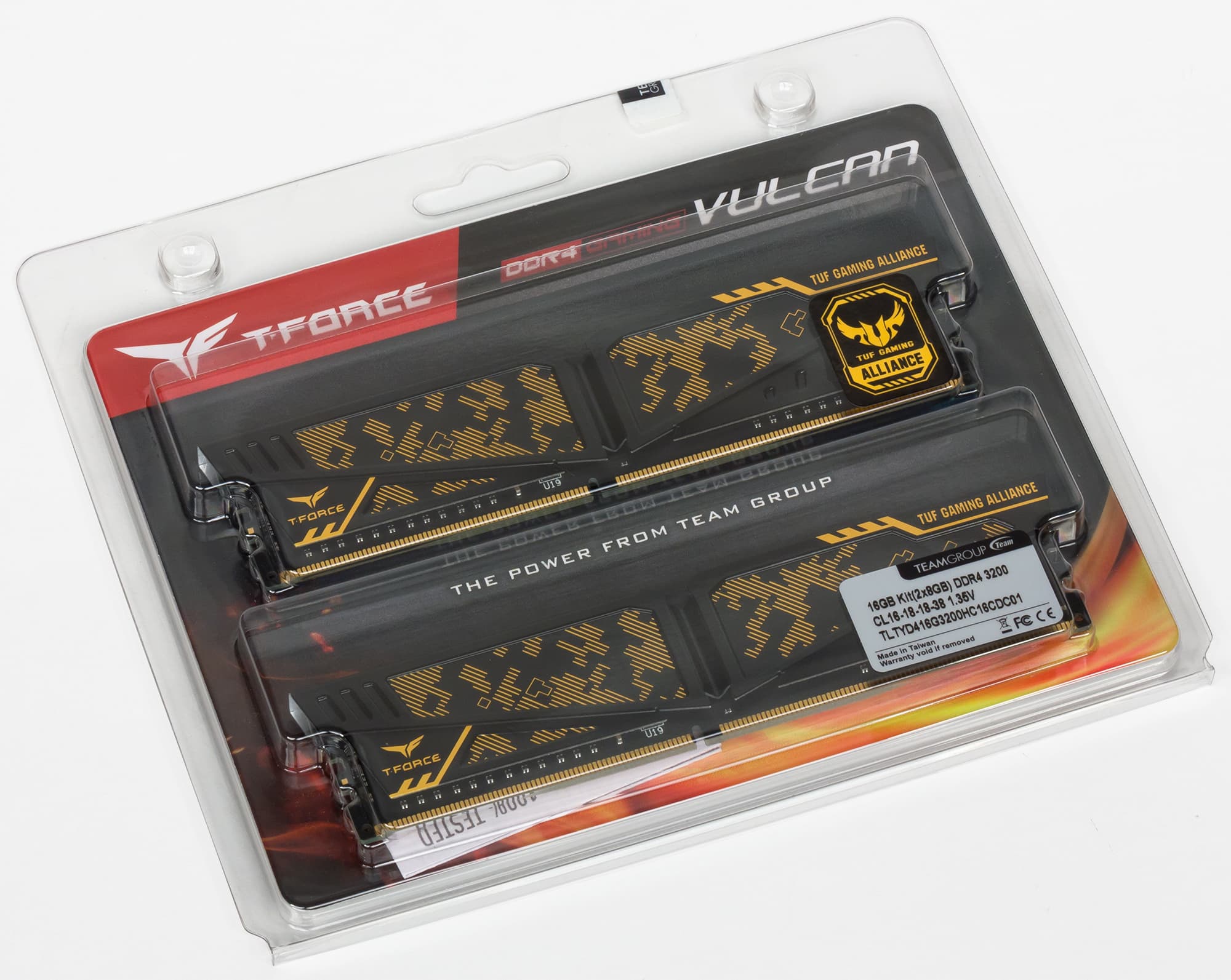 Итак, сегодня в прицеле нашего внимания комплект памяти из двух модулей Vulcan TUF Gaming Alliance DDR4. Это память игровой серии T-Force Gaming компании TeamGroup.