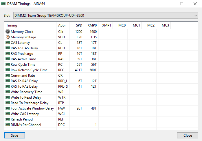 Согласно спецификации, модули памяти имеют тайминги CL16-18-18-38 при частоте 3200 МГц и работают при напряжении питания 1,35 В.