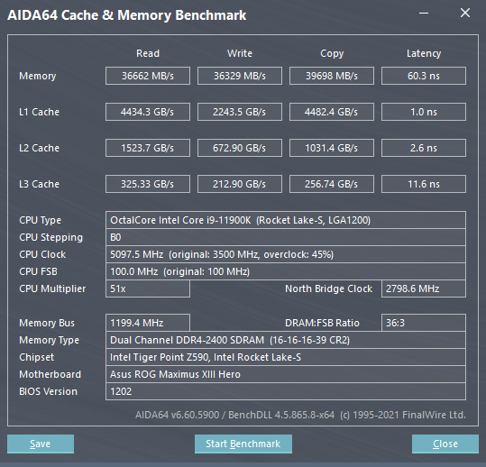 Начали мы ее, по традиции вооружившись процессором Intel Core i9-11900K и платой Asus ROG Maximus XIII Hero на чипсете Intel Z590. В автоматическом режиме память запускается в режиме DDR4-2400 с CL16. Тестируем, включаем XMP-режим — получаем положенные 4000 МГц с CL15, но Gear 2. Ручная настройка позволяет добиться работы в Gear 1 на частоте 3733 МГц, что нас не удивило — таковы возможности нашего экземпляра процессора.